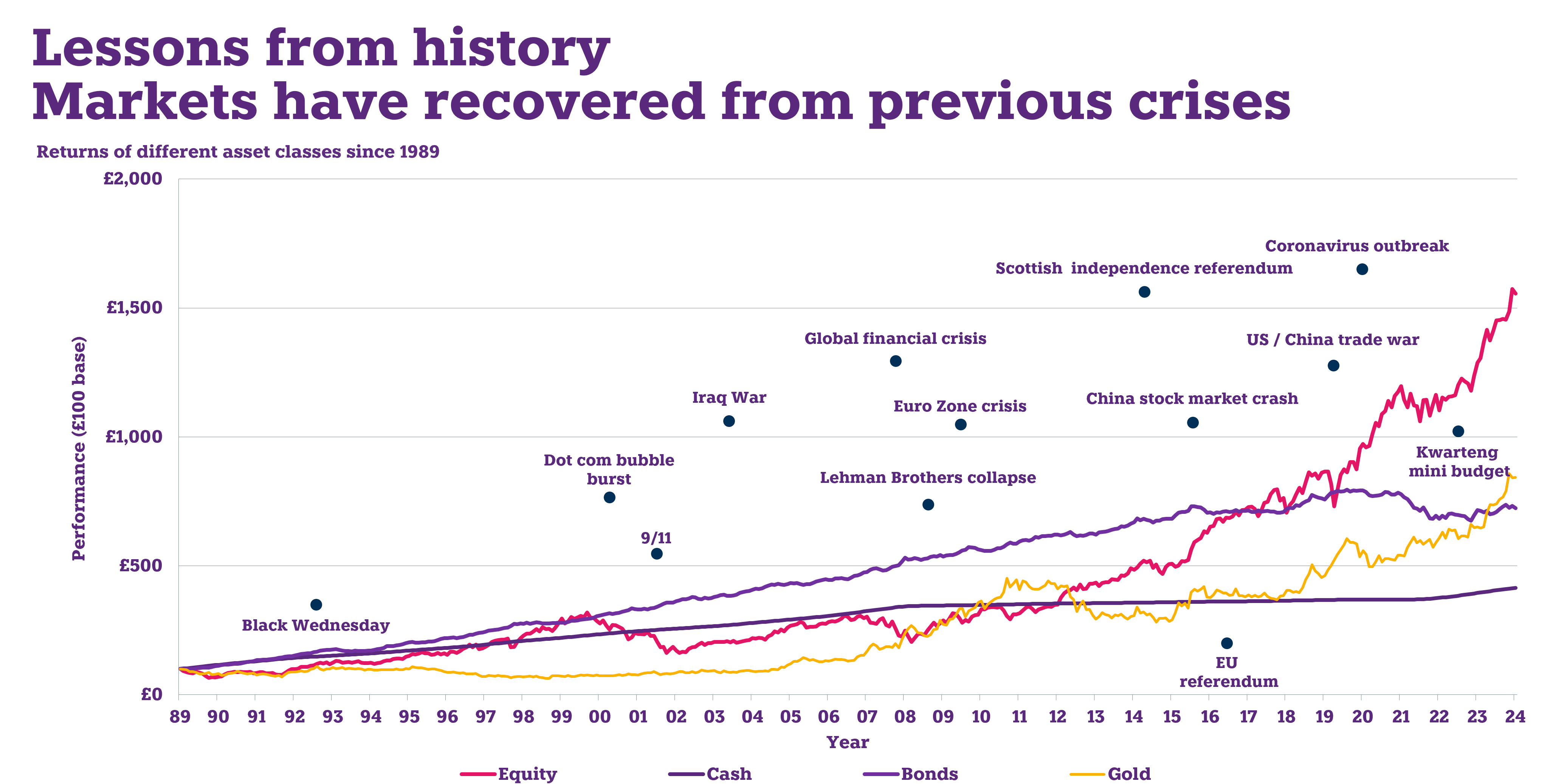 An important consideration when market conditions are changing is to focus on an extended time horizon. Those who hold firm through turbulence could be well placed to benefit when markets eventually settle.
